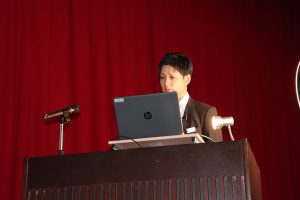 JA役職員や塾生らが聴講する中、14人が発表しました。折橋さんは「直売所が地域に果たす役割~地域に必要とされつづける直売所へ~」と題し、JAグループの直売所の売り上げの一部を県内プロスポーツチームに寄付することでチームと生産者の双方を応援し、地産地消と子どもたちの健全育成、地域の交流促進につなげる策を提案しました。